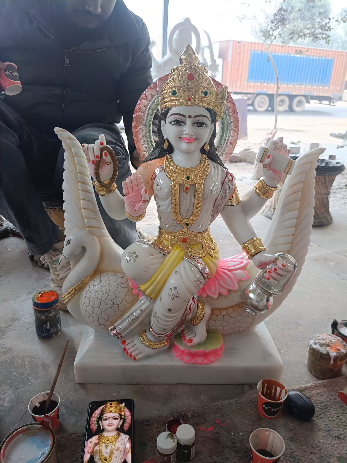 Makrana marble apni safedi, durability aur premium finish ke liye jaana jata hai. Har murti ko anubhavhi karigaron dwara haath se tarasha jata hai jisse detailing bahut hi sundar aur jeevant dikhti hai.