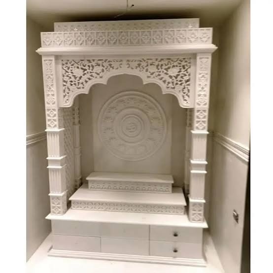 Makrana marble mandir ghar ke pooja room, office, temple aur spiritual places ke liye perfect hai. Aap apni requirement ke according custom size aur design me mandir banwa sakte hain — chhote wall-mounted mandir se lekar bade temple size tak.